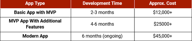 These are the factors that can affect the costing, but now it's time to think of development and it is always worth going with the latest yet best practices. So let's understand how much it costs to build an app with different MVP levels.